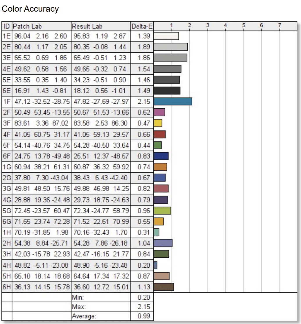 Calibrating the monitor with the Spyder Elite reduced the dE average to an excellent 0.54. it didn’t do well with the Calibrite Display Plus since it actually made the dE worse when we used it. But the bottom line is that it can be fine-tuned for editing and content creation.