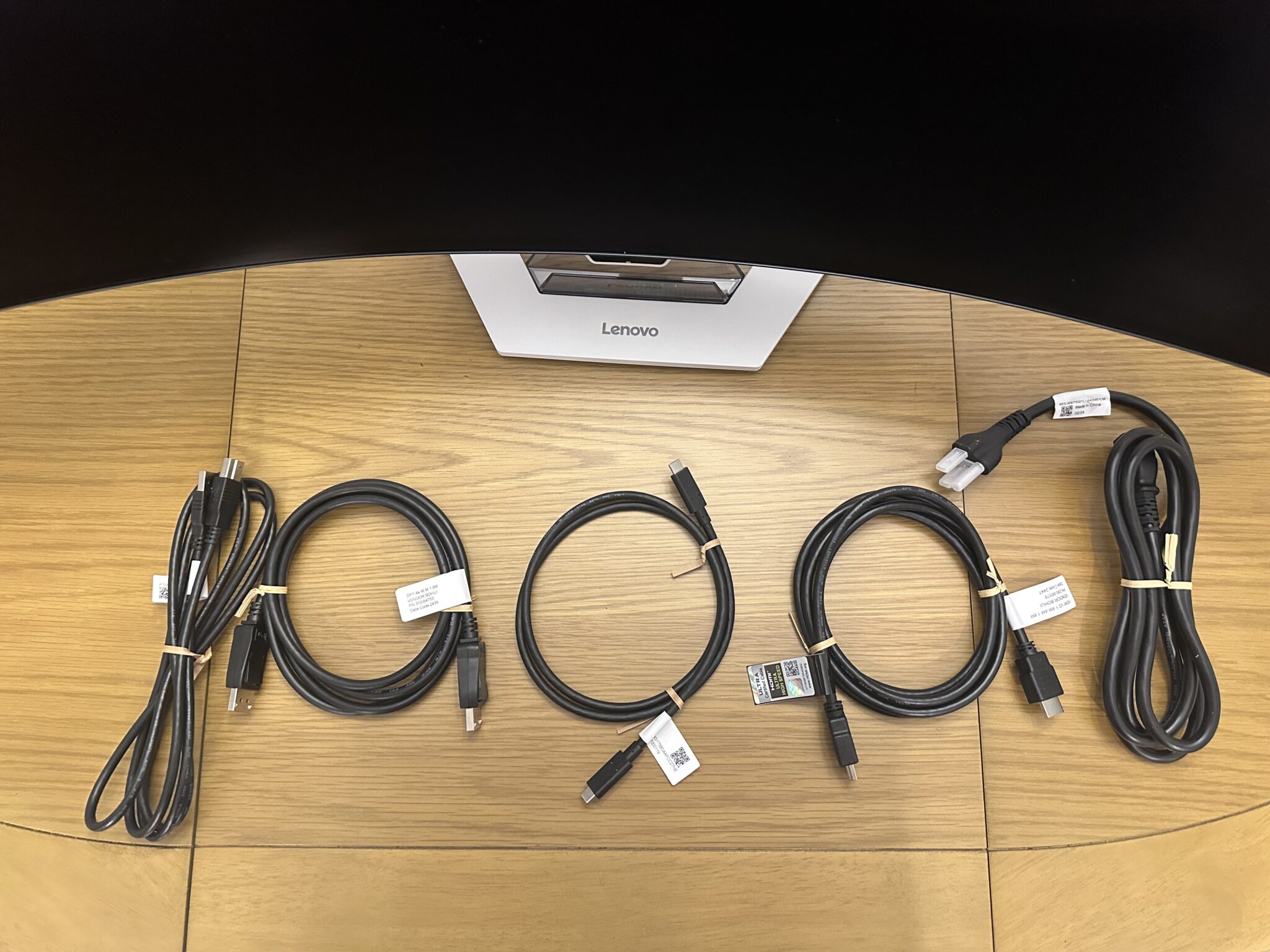 You also get everything you will need for the Lenovo Legion Pro 34WD-10’s functions with the package. You get cables for DP, HDMI, USB-C to USB-C, and a USB-B to USB-A wire for data upstream. You will also find documentation, including a calibration report for the device inside.